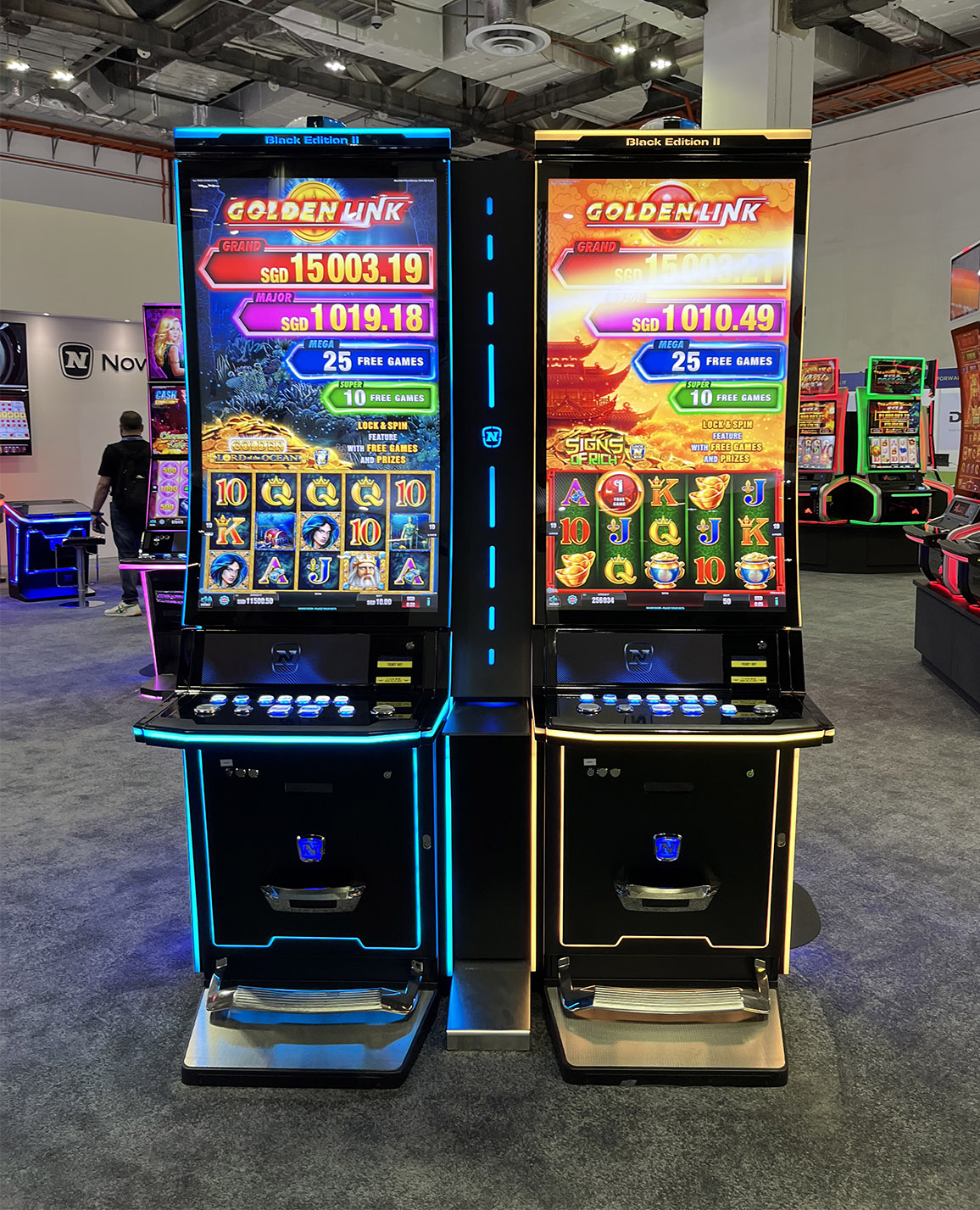 The joint booth of NOVOMATIC and Ainsworth at this year’s G2E Asia at the Marina Bay Sands in Singapore presented a premium display of gaming highlights for the APAC region: multi-games and Progressives, powerful ETGs and innovative sports betting kiosks, presented in a stunning range of cabinet hardware.
