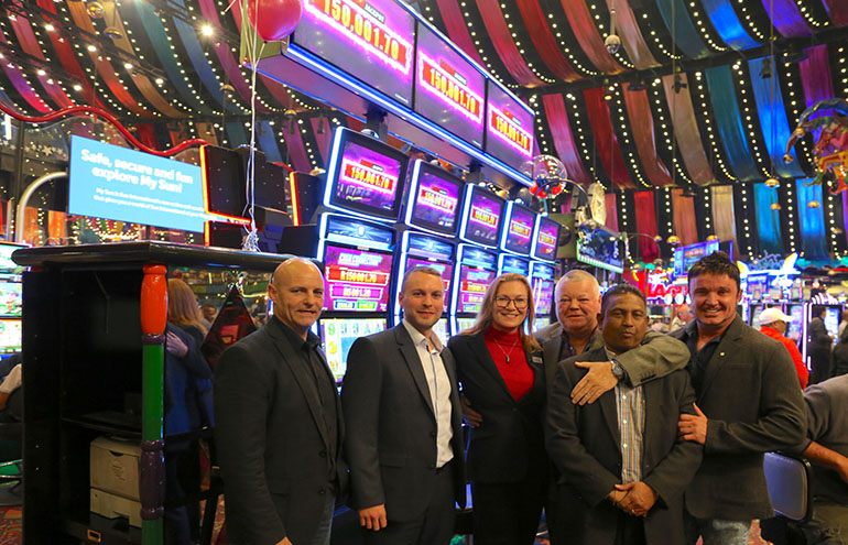 Image (left to right): Deon Valkenborgh, Sales & Marketing Manager NOVOMATIC Africa; Mike Robinson, Business Development Manager, Asia & Africa, NOVOMATIC AG; Annemie Turk, General Manager of Carnival City; Gordon Cameron, Managing Director NOVOMATIC Africa; Karthigasan Padayachee, Sun International Slots Manager and Einstein Luther, Technical & Compliance Manager at NOVOMATIC Africa (Image ©Roy Bannister/Gaming For Africa Magazine).