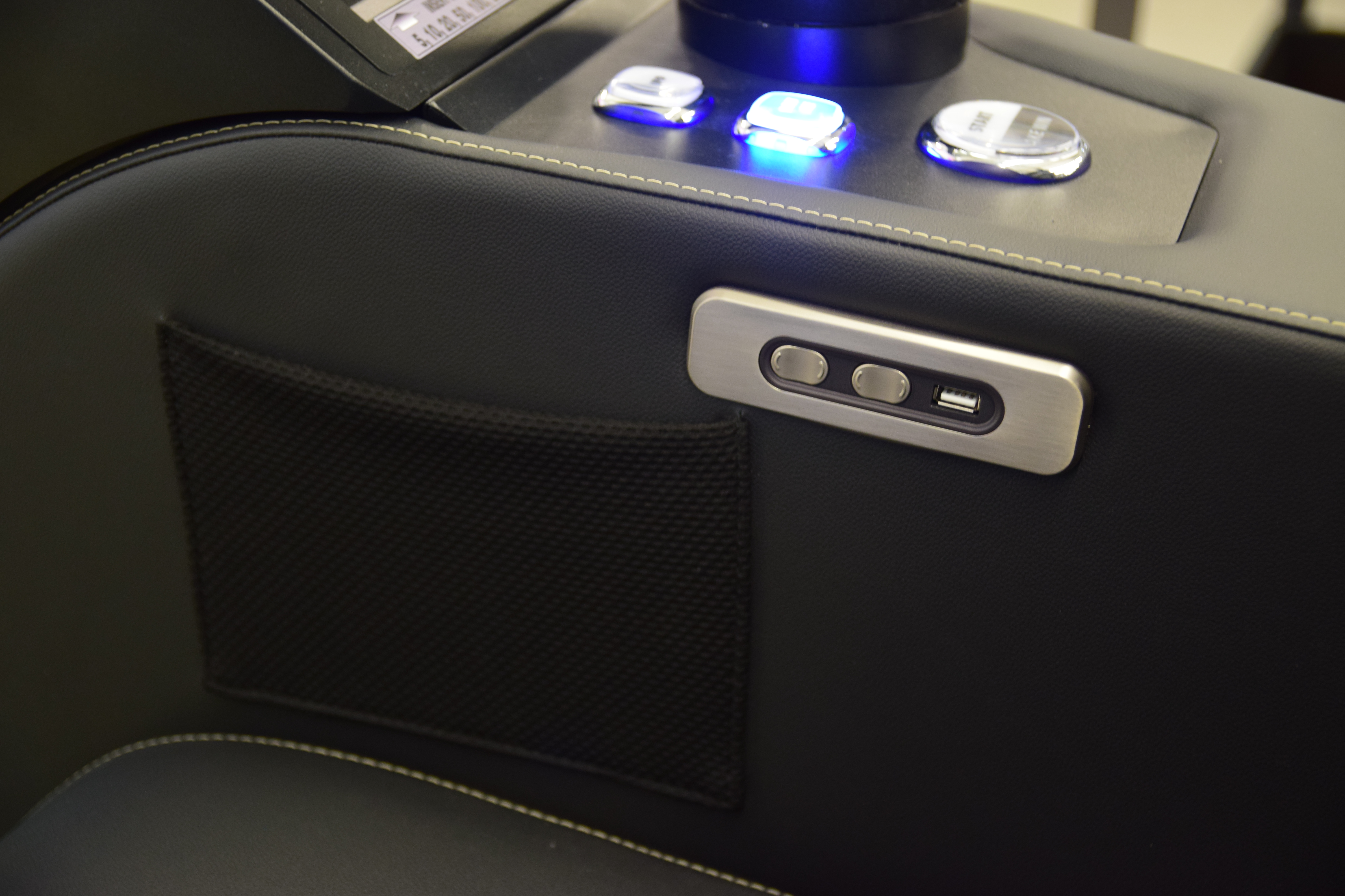 Armrest-mounted 15.6” Full HD TouchDeck™ PCAP player interface